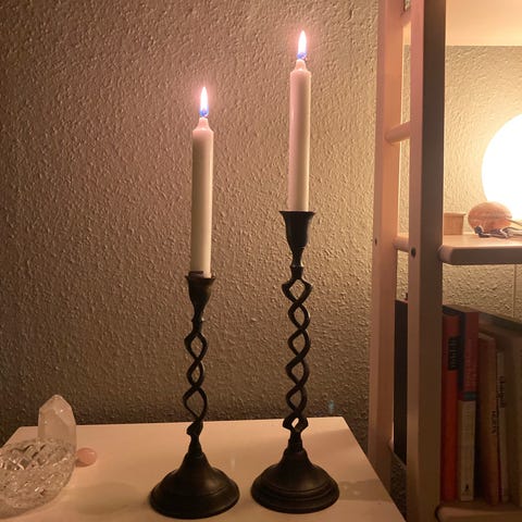2 stk vintage lysestager. Lavet i støbejern,meget smukke med fx kugle lys i.