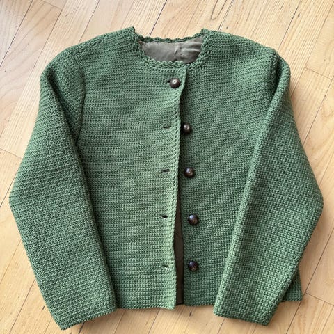 Cardigan, ukendt hjemmehæklet, str. 36, hvid, bomuld, God men brugt, en hjemmehæklet cardigan fra 70erne i bomuld i fin stand hæklet i tyndt bomuldsgarn i fin stand str 34 - 38 . sendes for købers regning eller hentes her