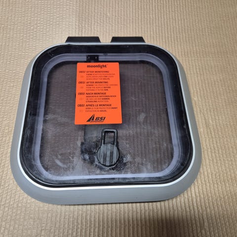 Dæksluge Moonlight S62 Offshore, med friktionshængsler, 180°, 425 x 425 mm (udskæringsmål), 470 x 470 mm (ydremål), sølv/grå