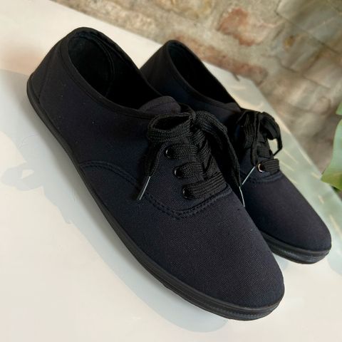 Fine sommersko i sort kanvas, med snørrebånd og blød gummisål.