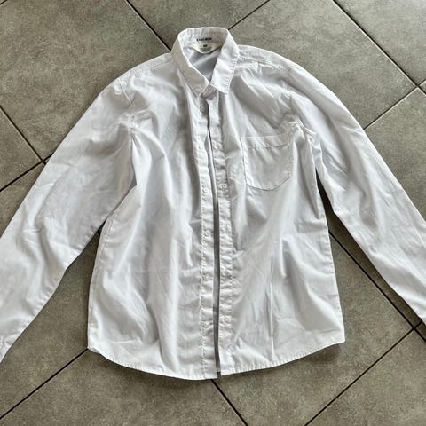 Skjorte, H & M, str. 86, Hvid skjorte, bomuld. Fra røgfrit hjem. Sender gerne med gls. Køber betaler porto. Skriv på annoncen. (Caro)(B1)(22)