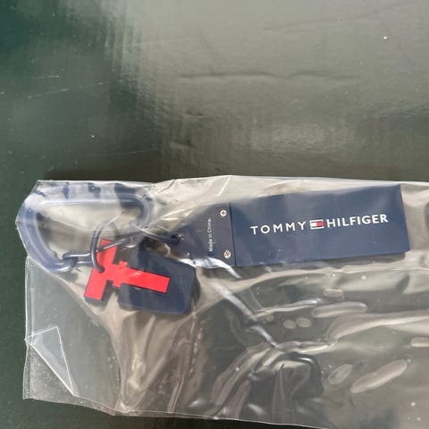 Tommy Hilfiger nøglering. Har patina. I metal og tykt stof. Logo foran. 9 cm lang.