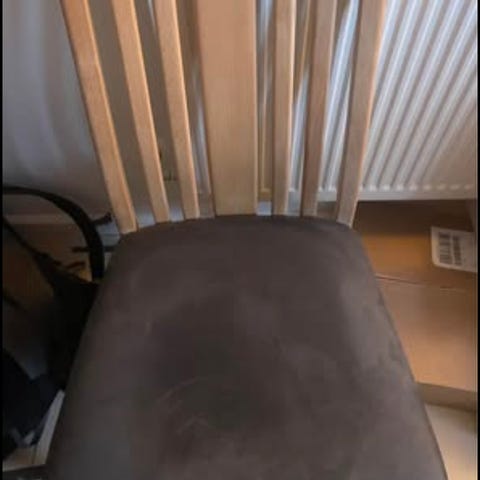 Spisebord stole I formpresset bøgetræ med stof på ryg og sæde, slidstærk stof.