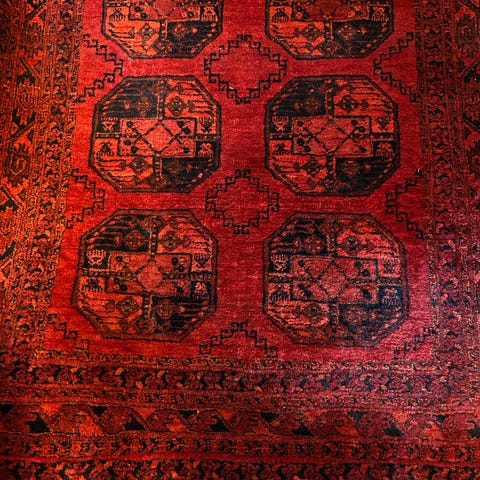håndknyttet tæppe med frynser, meget smukt og meget velholdt.