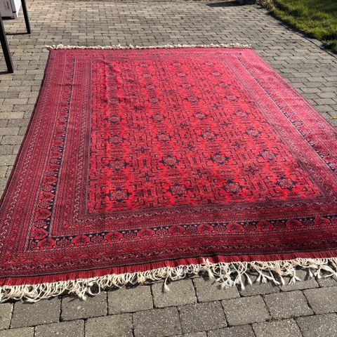 Ægte tæppe vævet i uld og silke med signatur. Mål: 170x112 cm. Sælges under halv pris kun 3.500 kr.