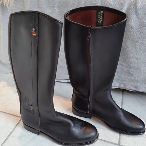De er slidt ved snuden og noget af det brune er falmet ved hælen. Se billederne.
