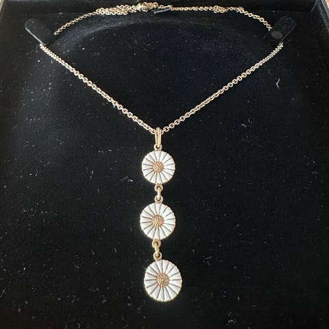 Smuk lang guldhalskæde (925) 94 cm af guldsmed Lina Falkesgaard der tidligere har arbejdet hos Georg Jensen. Solgt hos Birger Christensen. Brugt få gange og fremstår som ny.