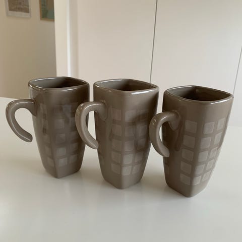 Helt nye espresso krus/kopper. Hvide og grå med en sort metal farvede stribe. Sælges samlede