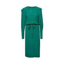 Strik kjole langærmet i en flot grøn farve med bindebælte. Maxikjole