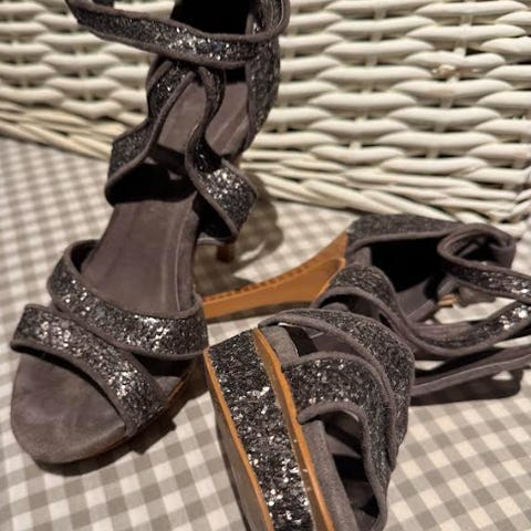 Kun brugt 1 gang, men har fået et lille hak i hælen (se billede) og sælges billigt 🌸