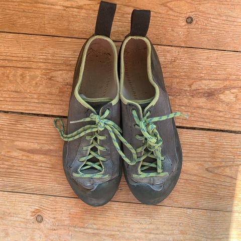 Klatresko, aldrig brugt på grund af den forkerte størrelse.