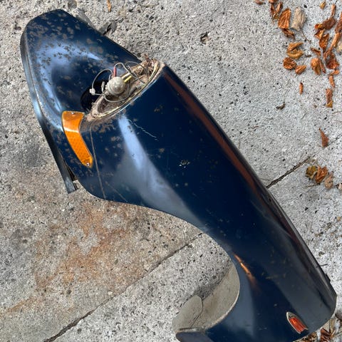En del papirer medfølger. Oprindelig registreringsattest har været en tur i vaskemaskinen, og registreringsnummeret kan ikke tydes, men der er en gammel servicebog og lidt andet forskelligt.
