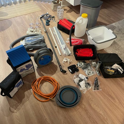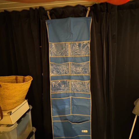 Opbevaringslommer til hjørnerne i vognteltet på Combi-Camp. Sæt bestående af 2 stk. med hver 5 lommer. Farve: Grå med hvid kantbånd og syninger. Passer bl a til Valenzia-modellerne.