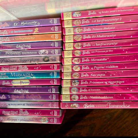 Her sælges 20 dvd'er med Barbie. Alle er med danske stemmer og bonusmateriale.
