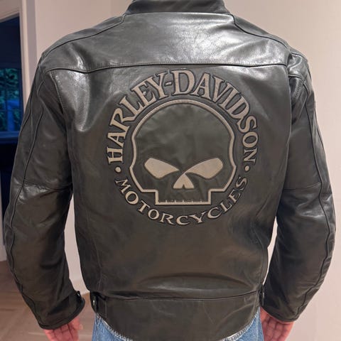 Harley-Davidson Legendary L Reg læderjakke i sort farve. Jakken er fremstillet i læder og har detaljer som lynlåslommer og justerbar bæltelukning. Designet til mænd og egnet til motorcykelbrug eller som en robust jakke til hverdagsbrug.