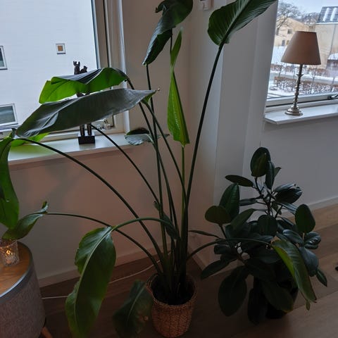 2 flotte gummiplanter som hver har 2 nye sideskud. 35 og 40 cm fra pottens bund.