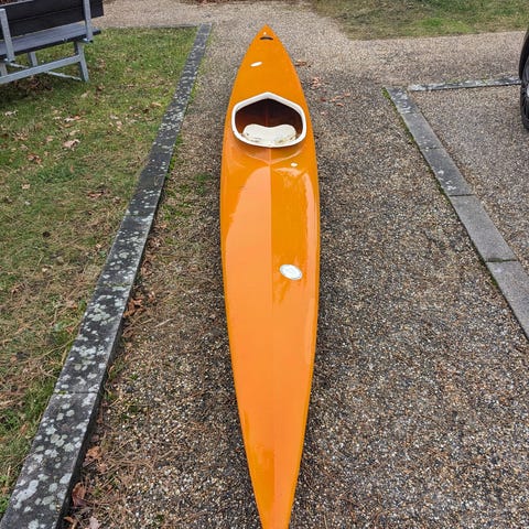 Pæn kapkajak, længde 520 cm, bredde 52 cm ved cockpitkant, sælges for klub ved Bagsværd Sø.