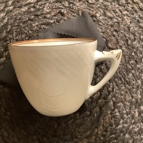 Et fint sæt med guldkant til kaffebordet. Sidetallerken i rigtig god stand i guldet, underkoppen er mere slidt i guldet. Kaffekop også fin i guldet.