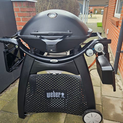 Komplet pakke: Weber q2000 gasgrill + grill vogn + ubrugt cover + 5 gåsdåsere