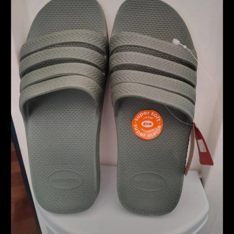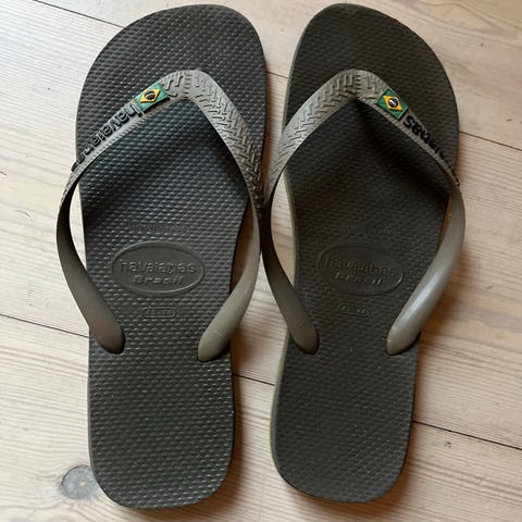 Ubrugte røde Havaianas sandaler med blå remme i str. 41/42. Prismærke sidder stadig på.
