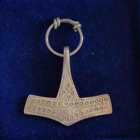Sjældent kopi lavet af Kay Bojesen. Mjølner er et kopi af et vikingesmykke, fundet på Bornholm. Smykket er sterling sølv og lavet af Kay Bojesen. som syntes det var en god ide at lav nogle ordentlige kopier af diverse vikingetidsfund. Som så blev solgt i muserumsbutikken. Samarbejdet med nationalmuseet begyndte i 1941 . Tror jeg.