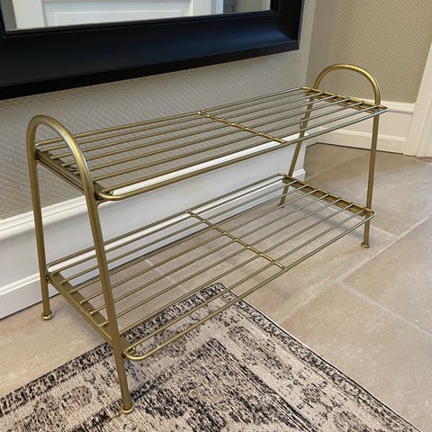 2 pæne mathvide Maze skohylder i pulverlakeret stål i meget pæn stand.