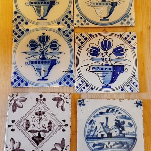Antik hollandsk flise med tre tulipaner,blå, fra 1700 tallet.relativt sjælden.