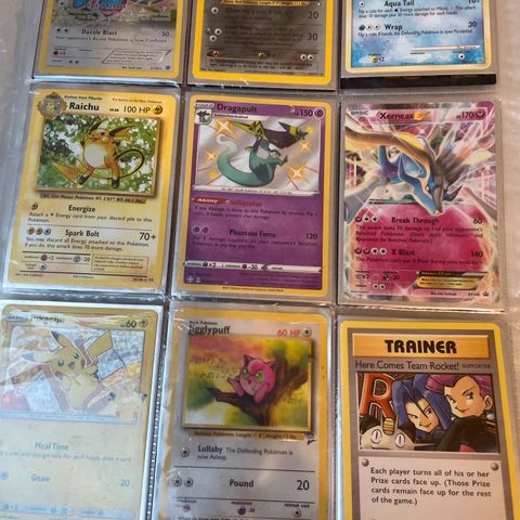 20 pokemonkort, som er vurderet til 1.181,13 kr., men jeg har sat dem ned til 1050. De 20 pokemonkort kommer med en sleeve og top loader til dem alle. Mvh Philip (Pernilles søn)