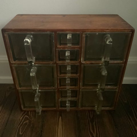 Krydderiskab med 9 glas, to skuffer og låger