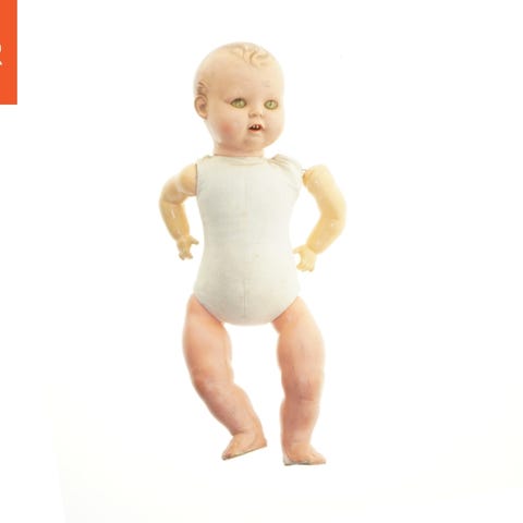 Den har en blød krop, har øjne som kan åbne/lukke - det ene skal lige hjælpes lidt med at åbne. Ellers i pæn stand.