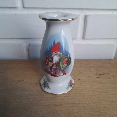 Porcelæn lysestager med Nisse, designet af Lars Carlson for Firkløveren. Serien: Exlusive Edition