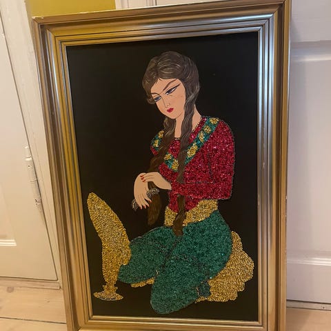 Fint lille “perlebillede” H 30, B 20 cm