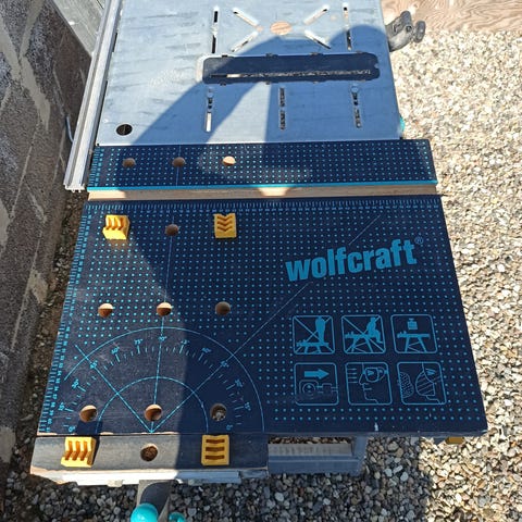 Wolfcraft styreskinne med vinkelanslag for 500 kr. Gør det nemt at lave lange, lige og præcise snit med rundsaven. Justerbar og passer til alle modeller. kun brugt én gang og fremstår som ny.
