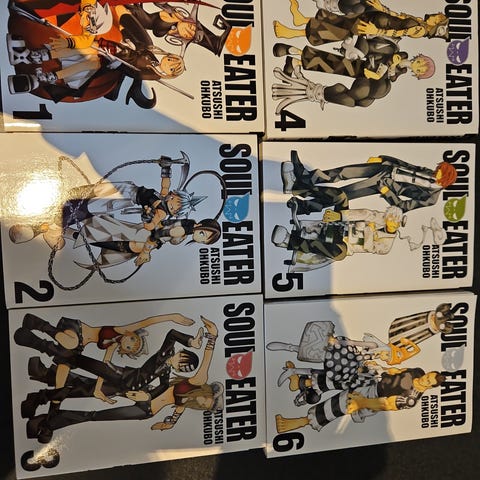Sælger Soul Eater manga bind 3 + 5. Går meget op i at holde mine manga pæne, så de er fuldstændig som nye: siderne har ikke taget noget sol, og er derfor stadig pæne og hvide, og bindingen på alle bøgerne er som nye (bøgerne lukker ikke op 'af sig selv').