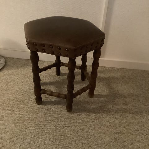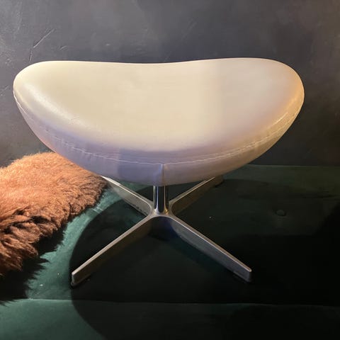 Smuk fodskammel polstret med lækker blødt sort skind.