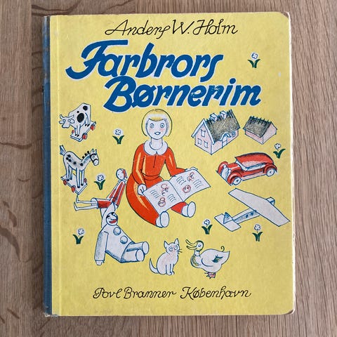 Bogen er næsten 100 år gammel: Moralske Børnerim fra 1933, udgivet på Nyt nordisk forlag af Arnold Busck. Bogen er illustreret af Arne Ungermann.