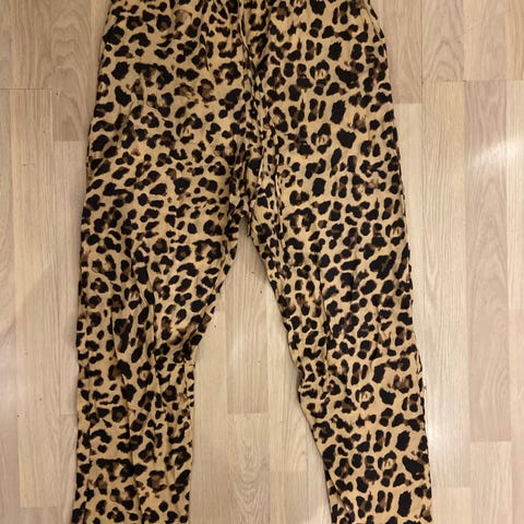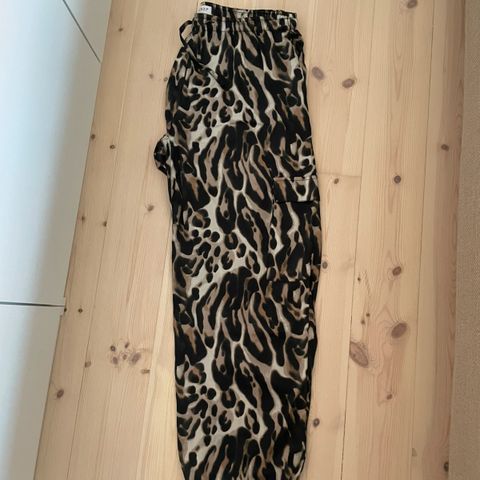 Bløde bukser med rødt/sort leo print og sort stribe langs siden i str.38.