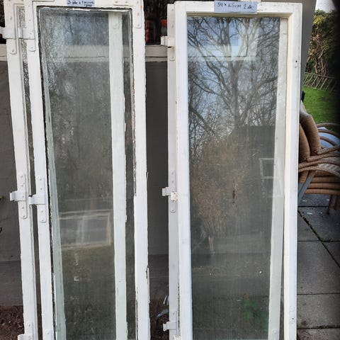 Fire farvede blyinfattede kernetræs vinduer i god stand, kittet er intakt. Mosaikvinduet er ikke med.