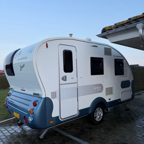 Stor dobbeltseng (fritstående), toilet- og baderum i bagenden, midtersiddegruppe med “skabskøje” over, stor siddegruppe samt det lækre store køkken i forenden. Alt udført i topkvalitet fra Adria.