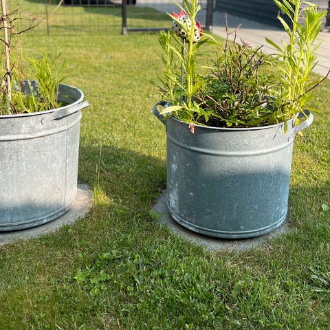 Smukke zink gryder 2 stk er 38 høje og 48 i dia,den anden er 34 høj 38 i dia.
