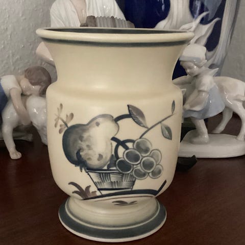Vase, Royal Copenhagen, Royal Copenhagen blå vase med blomstermotiv.