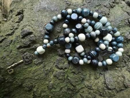 1. små sorte glasperler med større glas/ plastperler. Længst kæde er ca. 66 cm: 35 kr