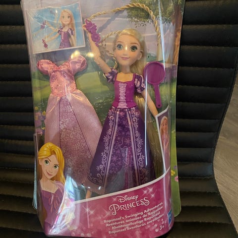 Uåbnet Belle dukke med tilbehør, som kan ses på billedet.