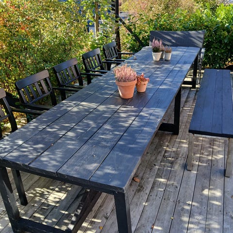 Solidt og rustikt plankebord til udendørsbrug - købt i Drømmehuset i Dronningmølle for 5-8 år siden til 9.999kr.