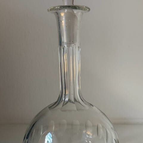 HELT INTAKT GLASKARAFFEL MED MØNSTER I GLAS. SKAL HENTES PÅ ADRESSEN (SENDES IKKE)