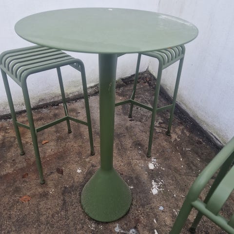 Ronan og Erwan Bouroullec for HAY. Barstole - Model Balcony. Desert Green. Mål. H. 65 cm. Fremstillet af pulverlakeret stål. Kan bruges indendørs og udendørs. Flere haves