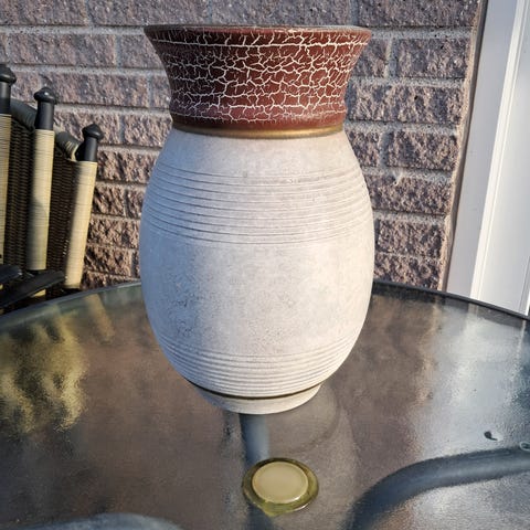 Måler ca. 40 cm I højden og 30 cm I diameter på bredeste stykke.