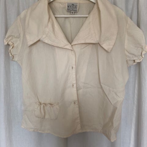 Flot kobolt blå t-shirt fra Massai, som ny. Hvid skjorte med korte ærmer følger gratis med, fordi den er en smule misfarvet i nakken.