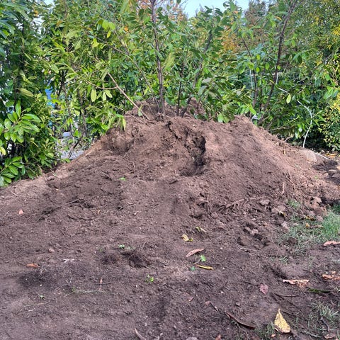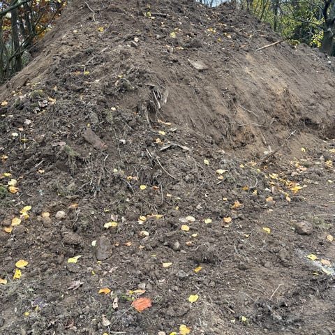 Gratis muldjord. Det er muligt at køre helt hen til stakken