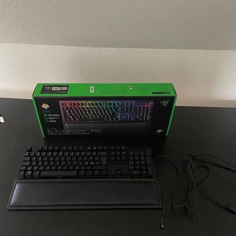 Nypris 1799, håndpuden er inkluderet i prisen. Clicky lyd, meget tilfredsstillende hvis man kan lide den slags. Ingen synlige brugsspor. Har mulighed for lys og konfiguration deraf.